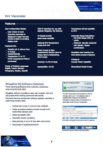 Wingather software provides an easy way to gather data and The DV1 Viscometer communicates to the PC