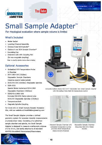 Adapter is designed to measure smallsample volumes embedded temperature probe (Requires SSA-DCU Water